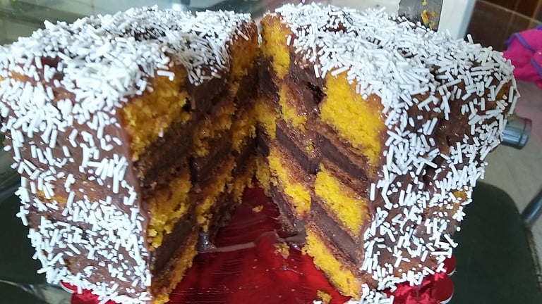 Bolo Xadrez com recheio de brigadeiro.Aproximadamente 1,5kg